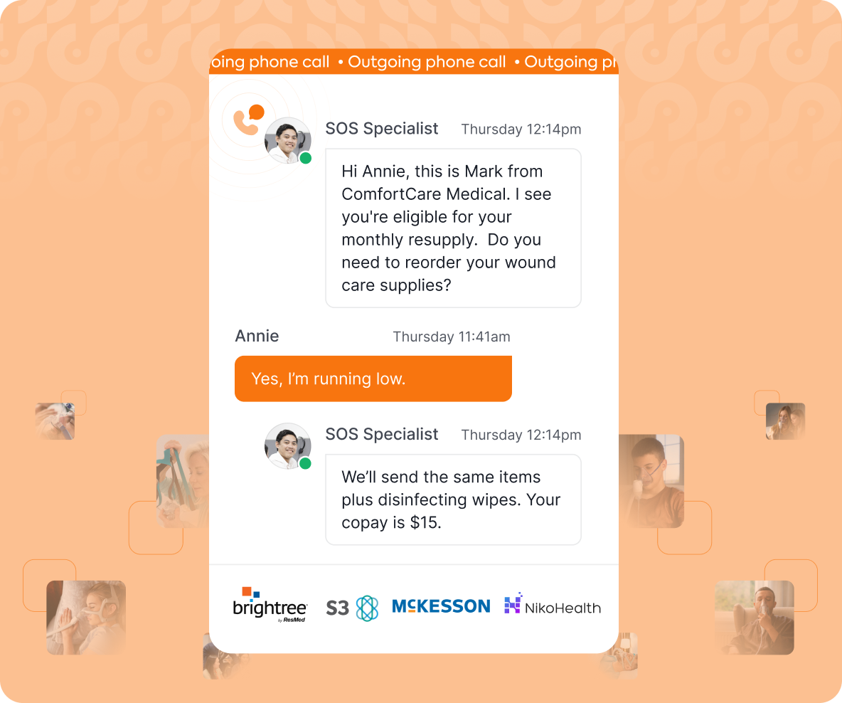 From respiratory to diabetic supplies, wound care to enteral, SOS works behind the scenes to manage patient communication, resupply outreach, and documentation across all product types.